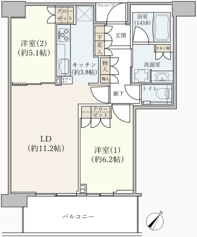 【成約御礼】2/22「ラシュレ大阪同心」10階/2LDK/57.10㎡/4,880万円